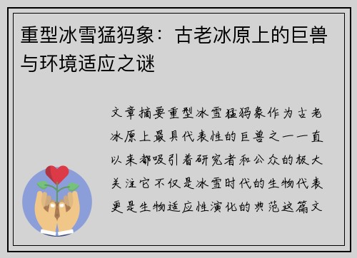 重型冰雪猛犸象作为古老冰原上最具代表性的巨兽之一,一直以来都吸引着研究者和公众的极大关注。它不仅是冰雪时代的生物代表,更是生物适应性演化的典范。这篇文章从四个方面对重型冰雪猛犸象的独特之处进行了详细阐述。首先,文章介绍了猛犸象的体态特征以及其如何适应极端寒冷环境。接着,分析了它们在食物资源匮乏的冰原环境中如何获取能量。第三部分探讨了猛犸象的社会行为及其如何通过群体合作提高生存几率。最后,文章深入讨论了猛犸象的灭绝原因及其对当时气候变化的适应反应。通过这些分析,我们不仅能够理解这一古代物种如何在冰雪的严酷环境中繁衍生息,也能窥见大自然如何塑造生命的适应能力和演化路径。